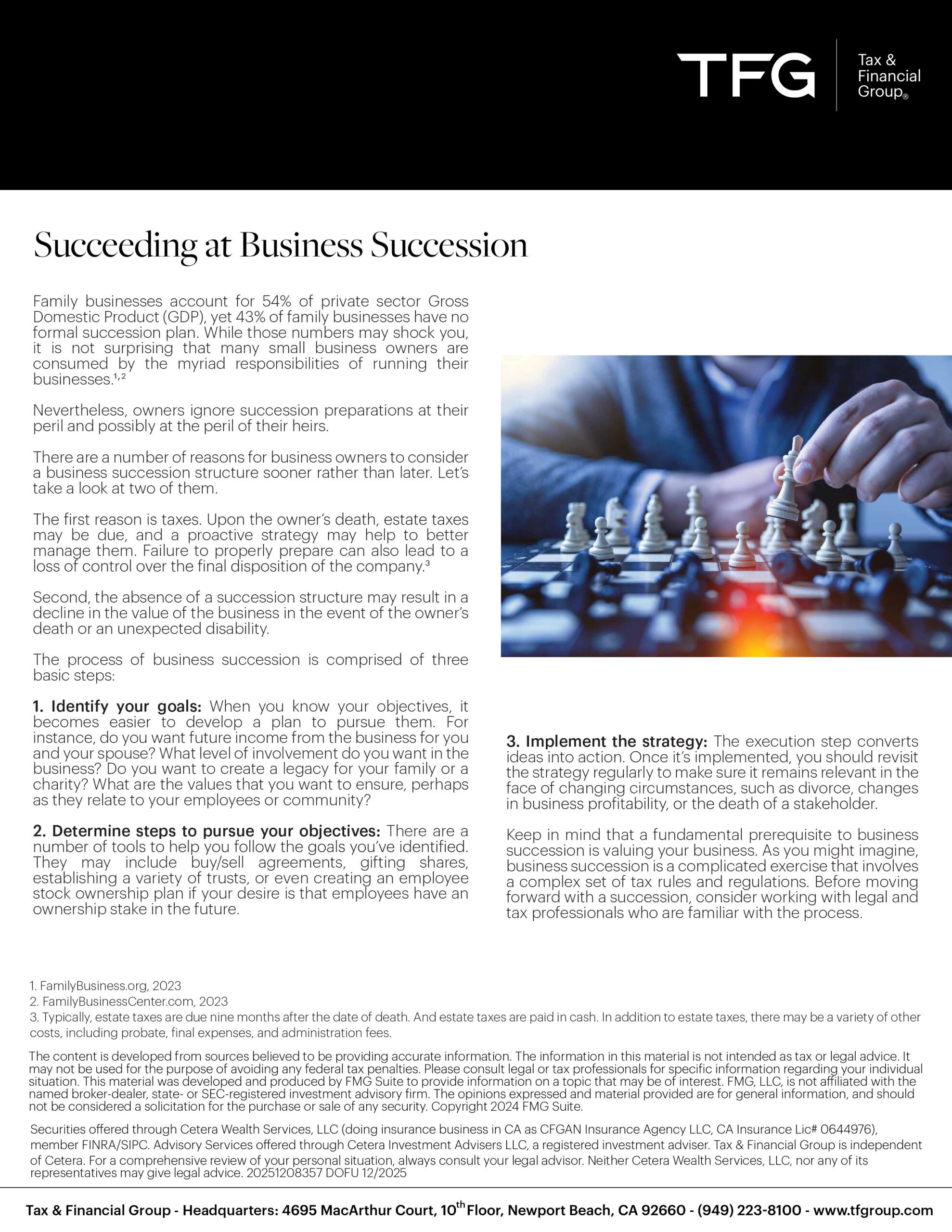 Securities offered through Cetera Wealth Services, LLC (doing insurance business in CA as CFGAN Insurance Agency LLC, CA Insurance Lic# 0644976), member FINRA/SIPC. Advisory Services offered through Cetera Investment Advisers LLC, a registered investment adviser. Tax & Financial Group is independent of Cetera. 4695 MacArthur Court, 10ᵗʰ Floor Newport Beach, CA 92660. For a comprehensive review of your personal situation, always consult with a tax or legal advisor. Neither Cetera Wealth Services, LLC nor any of its representatives may give legal or tax advice.